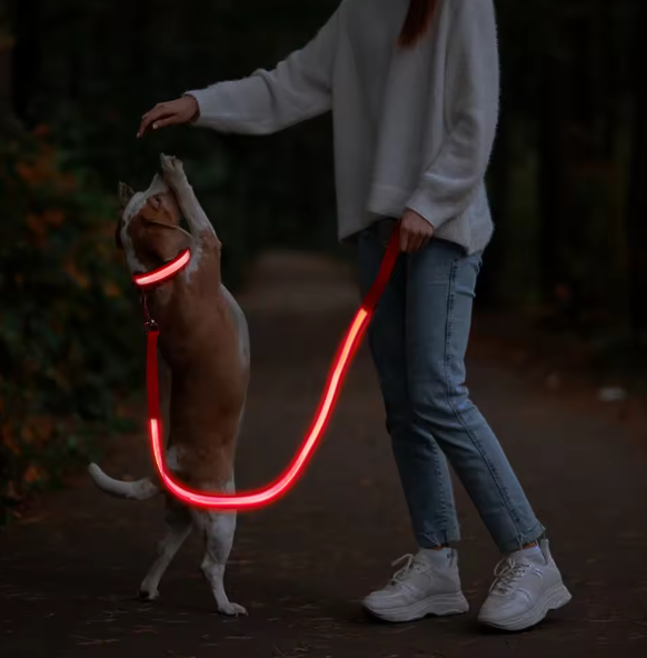 The collar is fully adjustable, allowing it to fit dogs of various sizes with ease. Attaching and removing the collar is simple, thanks to its quick and easy clip-on mechanism. This set is perfect for those who want a balance of safety, comfort, and durability in a dog collar and leash combo. With its bright LED light and reliable build, this set is perfect for keeping your dog safe and stylish during evening adventures.