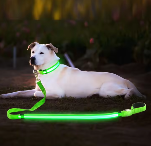 The Reflective Dog Leash and Collar set is perfect for keeping you and your dog visible during nighttime walks. This green collar and leash combination is designed for safety, ensuring that both pedestrians and drivers can easily spot your dog from a distance. Crafted from strong and durable materials, this set is made to withstand wear and tear while offering long-lasting use, even in all types of weather conditions.