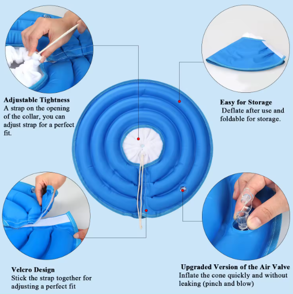 Designed with practicality in mind, this collar is easy to store when not in use. Simply deflate it for compact storage, and it will be ready for use whenever needed. For best results, we recommend hand washing the collar to maintain its softness and integrity over time.